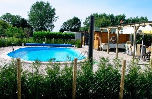 Tenemos una bonita piscina, de unos 10 x 5 m, con una gran terraza.