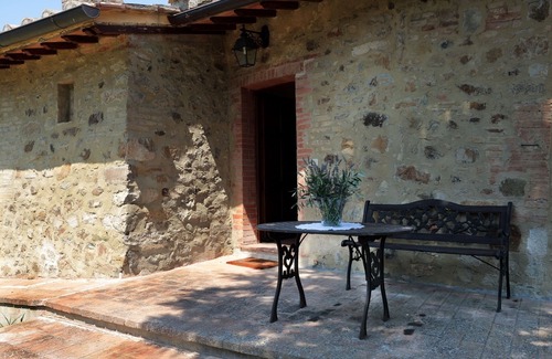 Esta antigua casa de campo recientemente restaurada en estilo toscano perfecto, con vistas al espléndido panorama de viñedos y olivares.