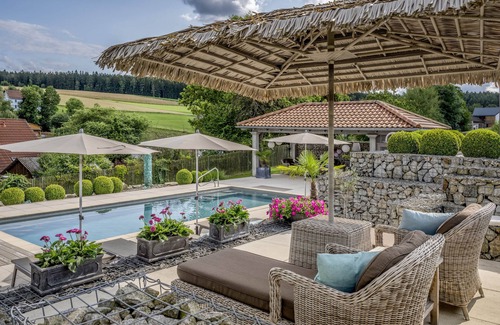 Experimentará la vida hermosa en un estilo de casa de campo en el nuevo apartamento "Birnbaum" sin barreras. Un patio y los jardines decorados con amor de Heindlhof le ofrecen visión y aislamiento. Déjate llevar por nuestro encantador paisaje, ya sea en bicicleta de montaña, en bicicleta de carrera o en skike, te llevaremos en tours individuales contigo. Da a tu cuerpo y mente paz y nueva fuerza a tu alma en la piscina climatizada con agua salada. El apartamento consta de habitaciones con camas a medida y vestidor. Además, cuenta con instalaciones exclusivas como la isla de la cocina, el comedor, la sala de estar con un cómodo sofá, un baño para sentirse bien con inodoro separado, tocador doble y ducha a ras de suelo. En la sala de estar y el dormitorio, un televisor de pantalla plana está disponible. El apartamento tiene un balcón cubierto y una terraza con muebles de jardín de acero inoxidable y una maravillosa vista de la naturaleza.