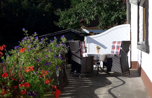 la gran terraza orientada al sur del piso de vacaciones WEISSENBACH está amueblada con muebles modernos de mimbre (altura cómoda para sentarse) -- 4 sillas plegables de mimbre, mesa -- gran toldo para el sol,-- 2 tumbonas,-- , 2 terrazas : la terraza pequeña está cubierta - 2 sillas y mesa -- se puede cerrar con una puerta. mesa --- cerrable con puerta de jardín --- ideal para niños y perros ---, aparcamiento propio para invitados con gran división --- tenemos un prado de ocio probablemente único de más de 2000 metros cuadrados que es insuperable --- el entorno y el bienestar van de la mano --- para nuestros pequeños huéspedes es un verdadero paraíso con columpios, tobogán, gran arenero, balancín, parque infantil, parque para niños, parque para niños, parque para niños, parque para niños. Arenero- balancín- una casita para niños, portería de fútbol, futbolín, ping-pong, canasta de baloncesto y por supuesto un gran trampolín con red de seguridad y muchos vehículos para niños, ideal para jugar y chapotear en el pequeño Weissenbächle - para los mayores - los padres pueden relajarse en la tumbona o hacer algo por su salud en nuestra instalación natural para pisar agua - después pueden fortificarse con una barbacoa, una cabaña rústica de barbacoa está disponible para sentarse cómodamente,