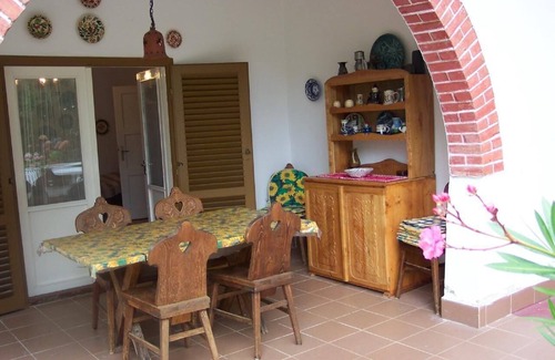 La casa tiene un gran jardín bien cuidado. El propietario vive en su propio apartamento en la casa.