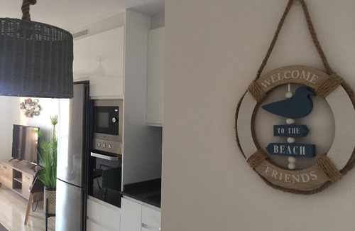 Precioso apartamento en el sur de la isla canaria de Fuerteventura. Dos dormitorios, uno con cama doble de 1,50 m.x2,00Otro dormitorio con dos camas indiviudales de 90 cm.x2,00.El apartamento dispone de una terraza con vistas al mar, equipada con mobiliario. Amplio y confortable cuarto de baño con ducha, Wc, lavabo, espejo y secador de pelo.Salón-comedor con cocina, muy grande. Equipado con TV con canales internacionales, Wifi gratis, canales de radio en la TV.Muy soleado durante todo el día y muy próximo a la playa. No es necesario un coche.En la cocina disponen de todo lo necesario (horno, vajilla, microondas, batidora, máquina de café, tostadora, hervidor de agua, lavavajillas, lavadora y mucho más)
