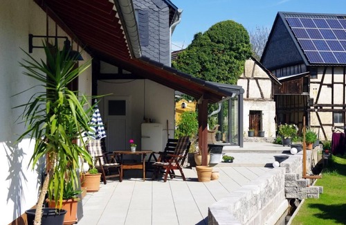 Apartamento de la familia Göttert Senderismo y ciclismo! o relajarse en el Hunsrück. Masaje de bienestar en la casa se ofrece! El apartamento está ubicado en el antiguo edificio del granero, que fue ampliado por nosotros. El apartamento tiene una entrada independiente y una terraza con acceso directo al jardín. Las instalaciones constan de un gran salón y salón con cocina americana. En diciembre de 2011, el apartamento fue renovado por nosotros. La cocina ha sido completamente renovada y tiene lavavajillas. El baño es amplio y tiene bañera con ducha. El dormitorio tiene una cama doble grande. Si es necesario, se puede configurar una cama supletoria / litera para niños en el dormitorio (hay disponible una cama plegable para niños pequeños). El salón tiene un sofá cama con somier (160x200) para 2 personas. El apartamento está totalmente equipado con azulejos y calefacción por suelo radiante. (Nueva calefacción desde el 06. 2011) Sábanas y toallas que recibe de nosotros gratis para el momento de sus vacaciones. Una conexión WLAN está disponible bajo petición. Los niños son especialmente bienvenidos. (Cuna, trona ... todo allí) Unzenberg: Bellamente ubicado en el corazón de Hunsrück (cerca de Simmern / Kirchberg Hunsrück). Como destinos de excursiones podemos recomendar los ríos: Rin, Nahe, Mosela y Sarre con sus lugares históricos. Pero también nuestros bosques y pueblos en Hunsrückhöhe lo invitan a quedarse (Soonwaldsteg, Rheintalsteg, excelentes rutas de senderismo, etc.). Kirchberg (3 km) ciudad del condado de Simmern (7 km) Esperamos su visita. Nota para los dueños de perros: La propiedad está limitada por setos / cercas. En varios puntos, los pasajes a las propiedades vecinas (pastos) no están cerrados.