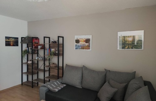La casa de vacaciones tipo estudio, de aprox. 70 m², consta de dos dormitorios separados y un cuarto de baño con aseo y bañera en la primera planta, así como un amplio salón en la planta baja con una zona de comedor en el pequeño invernadero y acceso a la terraza con una pequeña zona ajardinada, desde el salón hay acceso abierto a la pequeña cocina totalmente equipada con fogones, horno, lavavajillas, cafetera y frigorífico. En el salón y en el dormitorio hay un nuevo televisor de pantalla plana con TV vía satélite y recepción de radio.El piso tiene una plaza de aparcamiento y w-lan gratuito. Hay una estación de recarga electrónica para coches y e-bikes al lado de la casa de vacaciones estudio.