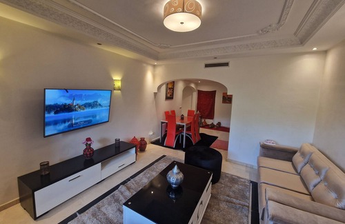 El lugar está cerca de todo, a 5 minutos del famoso lugar Jamaa El Fna y a 5 minutos del centro de la ciudad de Gueliz. El área está poblada principalmente por turistas franceses e ingleses. El apartamento tiene una sala de estar con vista al balcón, cocina, 2 dormitorios y 2 baños. La cocina tiene todo lo que necesitas para cocinar. (Platos, electrodomésticos, horno, cafetera, microondas, lavadora, etc ...). TV de pantalla plana con canales internacionales disponible.