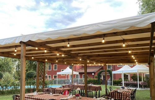 La masía se encuentra en la llanura debajo del pintoresco pueblo medieval de Montecarlo, está rodeada por las colinas de Valdinievole.