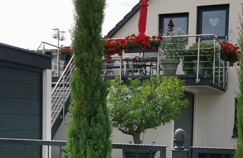 El apartamento se completó en 2016 y está en una nueva condición. El apartamento está ubicado en el ático de una casa de una sola familia. *** El apartamento se enfría en verano con calefacción por suelo radiante. La casa está al borde del campo durante unos 2 minutos de la estación de tren. El apartamento ofrece espacio para 3 adultos y equipos extensos. Es posible agregar una cama para bebés o una cama plegable. Las bicicletas traídas con usted pueden acomodarse en un garaje o sala de equipos. Fumar solo puede estar en el asiento al aire libre. El apartamento bordea en viñedos, posición de salida ideal para caminar, trotar o caminar. 15 minutos a pie de la casco antiguo. *********** Pakplatz directamente desde la casa. ***********