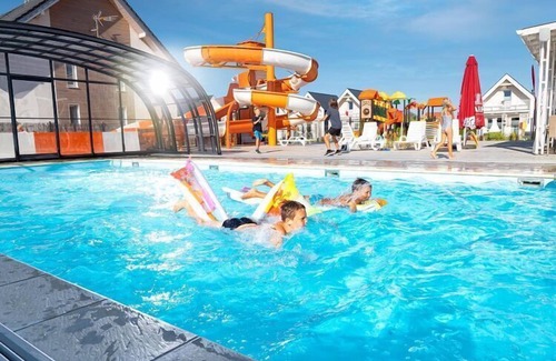 El centro de vacaciones familiar ofrece alojamiento de alta calidad y una rica infraestructura (piscina con toboganes, parques infantiles, campo deportivo) para garantizar unas vacaciones exitosas. La instalación está ubicada en una zona segura y vallada, a 350 m de la playa. Cómodos apartamentos de 2 habitaciones, en planta baja (con terraza) o en primer piso (con balcón). El apartamento consta de salón comunicado con la cocina, un dormitorio doble y un baño con ducha. El salón dispone de sofá cama doble, mesa y TV. Calefacción eléctrica. Internet inalámbrico está disponible. La mayor atracción del centro vacacional es un complejo de atracciones acuáticas (abierto del 01/06 al 14/09): piscina (con posibilidad de techo en días nublados), 2 toboganes, jacuzzi. Para los más pequeños hay atractivos parques infantiles y una sala de juegos (también hay mesas de ping-pong). Hay un campo deportivo (voleibol, baloncesto, fútbol). Del 06/08 al 09/06 hay un programa de animación para niños durante todo el día. Hay zonas de barbacoa en el jardín. Hay un snack bar y aparcamiento seguro. El precio de la estancia incluye: ropa de cama, consumo de agua, zona de atracciones acuáticas, programa de animación, internet, parking. Previa reserva, también están disponibles una cuna, una trona y una bañera para bebés. Sarbinowo es un pequeño y pintoresco lugar de veraneo en la costa oeste, a pocos kilómetros al oeste de Mielno. Aquí hay playas limpias y amplias, perfectas para escapar del bullicio de la ciudad. Es un lugar perfecto para un viaje en familia o con amigos. Para familias con niños, el parque de atracciones Pomerania Fun Park será un destino perfecto para una excursión de un día completo. No muy lejos del centro se encuentra la ruta ciclista internacional R-10, que recorre la cuenca del Mar Báltico. Recomendamos excursiones a la pintoresca Chłopy, al centro de Sarbinowo, al faro de Gąski y a Ustronie Morskie.