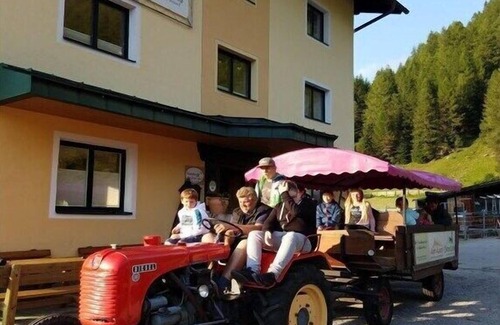 Nuestro lujoso apartamento, recientemente renovado, en la casa rural pertenece al centro ecuestre Alpin Appart, justo al lado. El apartamento, de 105 m², ofrece espacio para 6 personas en dos plantas. Aquí se fusionan lo rústico antiguo (un dormitorio de pino construido en 1900) y lo moderno. Una cocina moderna con comedor, una sala de estar con TV vía satélite y balcón, 3 dormitorios, un baño con ducha/bañera esquinera e inodoro, y un aseo independiente. Para 3-4 personas, hay dos dormitorios; para 5-6 personas, hay tres dormitorios. Como huésped de la casa rural, puede disfrutar de todos los servicios de la casa principal, como: reparto de pan, salón, parque infantil, zoológico interactivo y paseos con llamas y alpacas. No se admiten perros en la casa rural.
