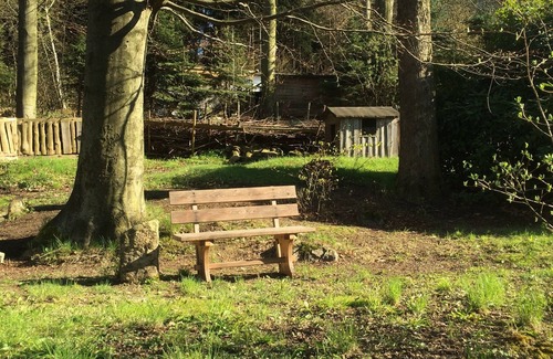 Un lugar excepcionalmente romántica es el curso con terraza de madera utilizable en un gran jardín natural con un proceso abierto instalaciones de chimenea y barbacoa.