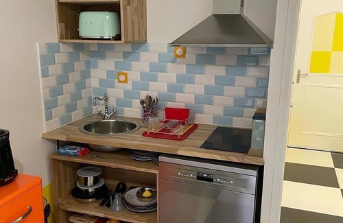 Bienvenido a nuestro apartamento-estudio recientemente renovado, decorado al estilo americano de los años 60, combinando la vieja escuela y el equipamiento vintage. Perfecto para una estancia de 3 personas, este espacio de 24 m² ofrece todas las comodidades necesarias para unas vacaciones inolvidables.