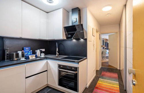 El apartamento estudio Zentrale Ferienwohnung mit Balkon con acceso sin escalones e interior, situado en Bad Liebenzell, tiene vistas a la montaña cercana. Este alojamiento de 38 m² consta de zona de estar/dormitorio, cocina totalmente equipada y 1 baño, por lo que tiene capacidad para 3 personas. Los servicios adicionales incluyen Wi-Fi, una smart TV con servicios de streaming, un ventilador y una lavadora. Además, también se proporciona equipamiento de gimnasio para su disfrute. El edificio en el que se encuentra el alojamiento dispone de ascensor. Este apartamento estudio dispone de balcón privado para relajarse por la noche.