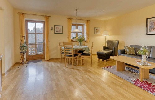 Ofrecemos apartamentos modernos y bien mantenidos con vista al bosque y la pradera de 2 a 6 personas para el gusto sofisticado. Todas las habitaciones son luminosas, agradable y moderno, con vistas relajantes del Bosque de Baviera. A lo largo de la sala de estar, hemos elegido no sólo por la belleza, pero sobre todo para la salud y el punto biológico de la instalación. En todas las habitaciones se encuentran suelos de madera en los dormitorios con camas de salud mentira confort, bases de cama ajustable y colchones separados con una dimensión total de 180 x 200 cm. En la moderna, baños con baldosas tienen baño con ventana, ducha, inodoro y lavabo. Las amplias salas de estar están equipadas con una mesa de comedor y un sofá-cama-nido con radio, reproductor de CD y televisores. Las cocinas completas invitan para cocinar. Un lavavajillas es estándar, así como un refrigerador, fregadero, vajilla y cubiertos. En el cuarto de lavado son una lavadora y secadora para una pequeña cuota. Una máquina de fax se puede utilizar en la gestión de la propiedad. Una sauna, una caseta de barbacoa con una chimenea de leña, un césped con ducha al aire libre y una chimenea están disponibles para su uso.
