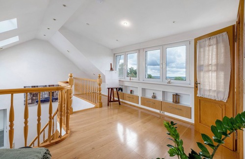 Apreciaréis la ubicación tranquila del pueblo con la naturaleza justo a la puerta, un punto de partida perfecto para excursiones. Hay rutas de senderismo que comienzan directamente desde el apartamento y la zona es ideal para motoristas y ciclistas. Tened en cuenta que el apartamento se accede por una escalera, por lo que es especialmente adecuado para parejas. Las tiendas más cercanas están a unos 16 km, ya que en el pueblo no hay. Los anfitriones viven en el lugar, pero no en el alojamiento reservado.