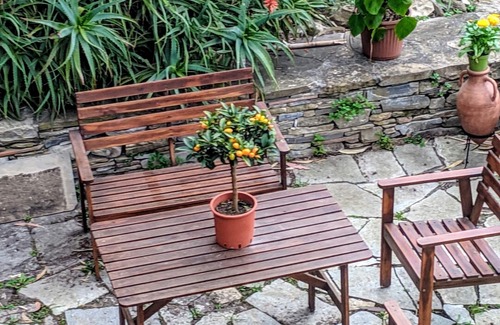 También hay dos áreas exteriores encantadoras con el apartamento. Uno es una gran terraza, que incluye jardín, zona de estar y barbacoa. Además, hay un área más pequeña con un banco y una mesa en la puerta principal del apartamento.