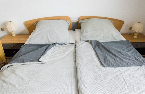 Este acogedor apartamento completamente amueblado es adecuado para hasta 4 personas y est�� ubicado en un ��rea residencial con tráfico (callejón sin salida) en 2 niveles con persianas en 1. Stock. En pocos minutos has llegado al centro. Este apartamento tiene 2 dormitorios (1 cama doble y 2 camas individuales). Para los más pequeños hay una cuna de viaje y una silla alta en el apartamento. Directamente en la casa hay una cochera y una caseta de cochera con una barbacoa y un área comunitaria de césped con un banco. La cocina cuenta con microondas, lavavajillas, radio, electrodomésticos y nevera / congelador. El cuarto de baño está equipado con una lavadora. El balcón del sureste se puede llegar a través de la sala de estar. El salón tiene u. a. Un televisor a color vía satélite y un micro sistema estéreo. A partir de aqu��������������������������������������������������������������������������������������������������������������������������������������������������������������������������������������������������������������������������������������������������, se accede a una escalera en el segundo dormitorio, donde hay dos camas individuales. Ideal para niños que quieren su propio imperio. En el vestíbulo de esta guardería hay para sorpresa de los huéspedes una cama para invitados y muchos libros y juegos. Incluye playa textil Strandkorbam reservada y pagada. El dormitorio, el vestíbulo y la habitación infantil están equipados con detectores de humo internos.