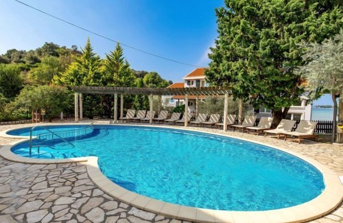 Kampor, a 6 km de Rab: Casa de apartamentos idóneo para niños. Lugar tranquilo, soleado, a 10 m del mar, a 10 m de la playa. Comunitario: terreno (vallado), jardín, cuidado con césped, piscina en forma de riñon climatizada (12 x 6 m, 120 - 160 cm de profundidad, Disponible por temporada: 25.Abr. - 03.Oct.) con escalera interior. Piscina para niños, ducha exterior, cenador, muebles de jardín, barbacoa. En el inmueble: acceso a internet. Aparcamiento en el mismo terreno. Tienda, restaurante 150 m, parada autobús 2.4 km, playa de cemento 10 m. A tener en cuenta: La foto corresponde a una de las viviendas. Se pueden reservar alojamientos adicionales. La propiedad con ref: HR3703.631 está situada en la misma parcela. El edificio "Mare" se encuentra en el mismo complejo que el inmueble "Tomislav" sobre un terreno de 2700 m2, con piscina comunitaria (nado contra corriente). Piscina para niños, profundidad 30-60 cm (forma parte de la piscina grande). A disposición: tumbona. Playa de hormigón, inclinación ligera, ideal para niños (cerca de la casa).