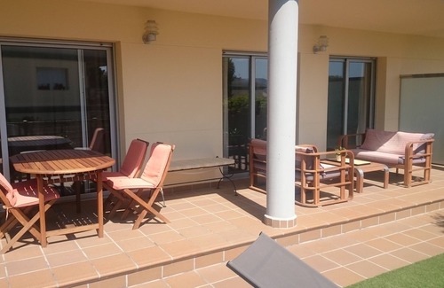 Apartamento planta baja, 2 habitaciones (camas de matrimonio), disponemos de una cuna plegable y una silla alta para bebés (una para dos alquileres, pídanlo en el momento de hacer la reserva). Cuarto de baño con ducha grande, cocina abierta sobre el comedor-salón (1 sola pieza). 30m2 de jardín iluminado. Terraza con salon exterior: 1 sofá 2 plazas, 2 butacas, 1 mesita de salón, 1 mesa grande para comer con 4 sillas, barbacoa. Dos toldos eléctricos.