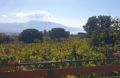 Apartamento independiente con habitación doble, sillón, aire acondicionado, televisión, buhardilla y balcón panorámico, baño completo con ducha privada, aparcamiento privado, entrada independiente, inmerso en el verdor del parque del Vesubio, a pocos kilómetros del mar y del sitio arqueológico de Pompeya. Se encuentra en la planta superior de una villa independiente. La vista desde el apartamento es panorámica del mar y del Vesubio.