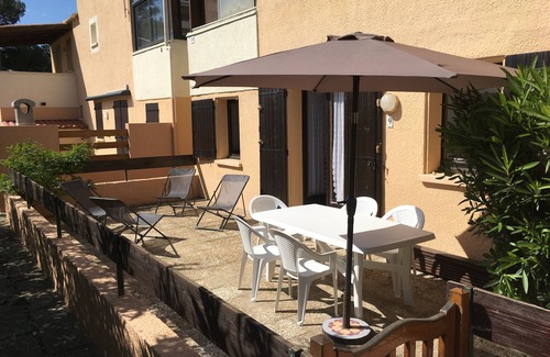 Particulier 0475377345 alquila Apartamento Port leucate, 3 habitaciones en una sola planta con gran terraza al abrigo del tramontane 300 M de la playa. Dos habitaciones con una cama doble y un sofá cama en el salón.