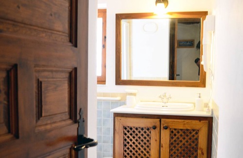 Apartamento que se encuentra frente a la biblioteca y al lado de una de las cascadas de agua del complejo, cuyo sonido nos hace el ambiente más fresco y agradable, especialmente durante la noche. Agradable estancia en un apartamento individual e independiente. Tiene en planta baja el salón-cocina, y en alta el baño y dormitorio con cama de matrimonio. Idóneo para parejas. La decoración del Apartamento Río, con vistas al río de Galera (de ahí su nombre), se ha realizado respetando el entorno del lugar utilizando mobiliario típico de la zona y de la época. Ocupa el lugar de los antiguos establos y pajar del molino.