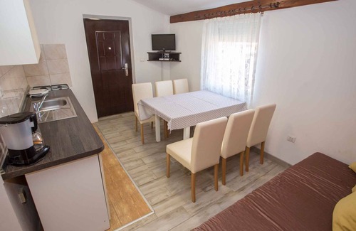 Apartamento vacacional con piscina Su alojamiento turísticoEl apartamento vacacional está rodeada por un cerrado terreno de jardín o (1200 m²) con flores y arbustos. El propietario no vive en la casa o en la propiedad. El terreno está rodeado de una valla y un seto. Para uso común a su disposición: terraza, sombrilla, tumbona, muebles de jardín, ducha de jardín, zona de hogueras, pabellón y patio. Piscina exterior para el uso común (diámetro 24 m, 1,4 m de profundidad). La instalación de la piscina esta operativa desde principios de abril hasta finales de octubre. Su apartamento turístico1 planta, 3 habitaciones (de los cuales 2 dormitorios), 62 m², 5 personas. Entrada cubierta por una escalera exterior y una terraza (8 m²) a la cocina.Planta baja: Dormitorio (13 m²) con 1 cama doble. Salón (15 m²) con 1 cama adicional en Cama plegable, rincón para sentarse y televisión. Cocina (15 m²) con zona comedor (4 plazas), cocina de gas (4 fuegos), horno, nevera (congelador), cafetera, tostadora, hervidor eléctrico de agua y acceso a la terraza. Baño (8 m²) con ducha, 1 lavabo, inodoro y ventana. Primera planta: Dormitorio (13 m²) con 2 camas individuales. Otras instalaciones: acceso de internet (WLAN). Recepción televisiva vía satélite. En el apartamento vacacional está prohibido fumar. Animal domésticopermitido, EUR 15.00/Animal doméstico y día. UbicaciónCancini. El apartamento vacacional moderno y convenientemente equipada (año de construcción 2014) se encuentra en la periferia de la localidad y en una tranquila, una soleada y aislada ubicación. Vista de la propiedad sobre el panorama. El acceso se realiza por una calle secundaria (asfaltado). Aparcamiento en la propiedad (para 1 coche). Compras 3 km, restaurante 1500 m, centro de la localidad 4 km. discoteca en 7 km. piscina cubierta, sauna respectivamente 5 km en Hotel Diamant. estación de tren en Pazin 35 km. cine, médico, farmacia, banco respectivamente 4 km en Porec. aeropuerto en Pula 55 km. carretera principal 1000 m. parque infantíl 800 m. En el veranoAdria 3 km en Adriatisches Meer (playa 3 km en Materada con prado, gravilla, piedras, rocas y plataformas de baño). golf, montar a caballo respectivamente 7 km. tenis en Luna 3 km. playa canina, minigolf, posibilidades de deporte acuatico, alquiler de barcos, embarcadero respectivamente 3 km en Materada. pescar, buceo respectivamente 4 km en Porec. Condiciones y preciosEn el precio incluidopiscina exterior, acceso de internet, tasa de inscripción, cuna, aire acondicionado, estacionamiento, electricidad, agua, limpieza final, toallas, tumbonas, ropa de cama (equipamiento inicial), WLAN acceso de internet. Costes adicionales-Costes en el lugar/destino:/obligatorio:póliza de turismo según la tarifa del lugar.fianza:200 Euro