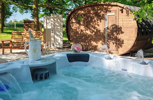 Disfrutad de la terraza privada cubierta y del jardín comunitario con arenero, columpios, cama elástica, tobogán, estructura para trepar y zona de fitness. El área de bienestar con sauna de barril, jacuzzi y ducha exterior os invita a relajaros (uso bajo petición y con coste adicional; consultad antes de reservar si deseáis una fecha concreta). Os recibirán la perra de la finca, así como gatos, cabras y gallinas.