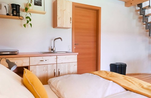 Esta moderna casa de vacaciones estilo loft para 4 personas se encuentra en una casa de campo austriaca en el campo de Scheibbs, en la Baja Austria. Ofrece una cocina completamente equipada, un amplio dormitorio, una sala de estar con un sofá cama extraíble, un hermoso baño y un gran jardín con un estanque para nadar, áreas para tomar el sol y una terraza para asar. WiFi gratuito disponible en todo el apartamento.