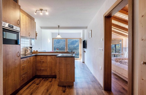 El apartamento cuenta con un balcón privado donde relajarte por la noche y disfrutar de las relajantes vistas a la montaña.