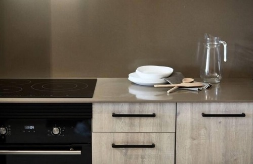La cocina está completamente equipada, lista para que prepares tus platos favoritos, mientras que el salón, con un cómodo sofá cama, ofrece un espacio perfecto para relajarte después de un día de sol y playa.
