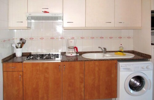 "Apartamentos Amores (TEL201)", 3-room apartment 80 m2. Practical furnishings: living/dining room with dining table, satellite TV and digital TV. 1 room with 2 beds and electric heater. 1 room with 1 french bed (1 x 140 cm), electric heater. Kitchen (4 gas rings, toaster, microwave, electric coffee machine). Shower/WC, sep. WC. Balcony 18 m2. Balcony furniture, deck chairs (2). Marvellous view of the sea. Facilities: washing machine, safe, children's high chair, baby cot. Please note: non-smokers only. Fire extinguisher. VTV0614BAL