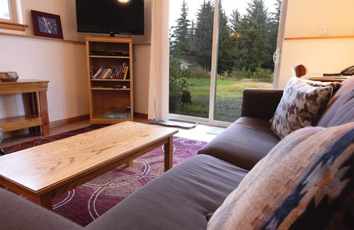 El apartamento está ubicado en la planta baja de Dolphin House y se puede alquilar por separado o junto con toda la casa. Tiene una entrada independiente y hermosas vistas del canal de Lynn y las montañas. La sala de estar cuenta con un sofá / cama queen size, televisión de pantalla plana, un pequeño escritorio y una mesa redonda con 4 sillas. La cocina cuenta con estufa, horno, refrigerador grande y microondas con platos, ollas y sartenes y otros utensilios de cocina típicos. El baño tiene una combinación estándar de bañera y ducha. El dormitorio tiene una cama queen size, un armario, portaequipajes y ventana. Hay una parrilla de gas afuera. .