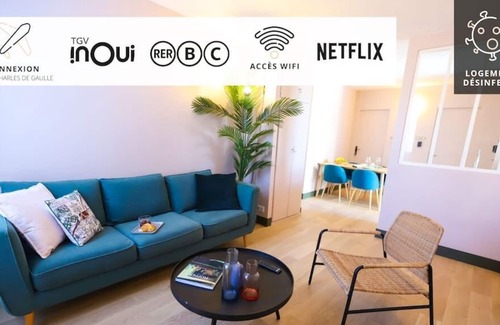 APARTMENT NEAR PARIS ☆ 8 PEOPLE ☆ RER TGV NETFLIX Se encuentra en Quartier Atlantis. APARTMENT NEAR PARIS ☆ 8 PEOPLE ☆ RER TGV NETFLIX ofrece alojamiento, con TV, Silla de ruedas accesible, Cocina, Entre otras comodidades. Estas características Apartamento TV, Silla de ruedas accesible, Cocina, Para que su estadía sea cómoda.