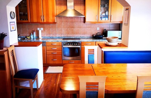 Sončni Mokec means Sunny Flour and it is for a good reason as there is a bakery on site on the ground floor letting up the pleasan smell of freshly baked pastries and bread in the morning to tempt you out of bed. The Two Bedroom Apartment has a very homey atmosphere and a lovely view towards the garden and mountains in the distance from it's balcony which reaches around the house. Guests have access to a well equipped kitchen, dining area, living room, private bathroom and private parking.