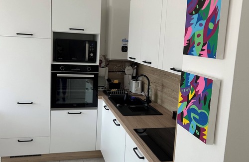 Al instalarte en este alojamiento de 1 dormitorio y 1 baño, encontrarás una sala de estar, un comedor y una zona para barbacoas. El cuarto de baño incluye un secador de pelo, toallas y papel higiénico. La cocina está equipada con horno, placa de cocina y frigorífico, además de cafetera y tetera, hervidor eléctrico y microondas. Y gracias a la lavadora y la secadora, podrás viajar con poco equipaje.