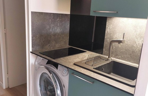 Prepara una comida casera en la cocina básica, equipada con horno, placa de cocina y frigorífico, además de cafetera y tetera, hervidor eléctrico y microondas. Y como hay acceso a una lavandería, no necesitarás llevarte mucho equipaje. Otras comodidades incluyen aire acondicionado y calefacción.