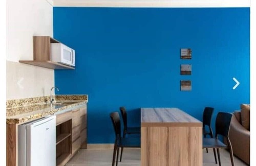 Have fun with the whole family in this comfortable and stylish place. Apartment in Resort, facing the sea, on Coroa Vermelha beach, Porto Seguro. The apartment accommodates 5 people, with a bedroom with a double bed and a single bed, and in the living room a very comfortable double sofa bed. It also has an American-style kitchen with microwave, minibar and food counter, a balcony with chairs to relax, air conditioning, blackout curtains and Smart TV with Netflix. The Resort has leisure infrastructure in a complete Beach Club, with four outdoor swimming pools and a children's pool, water park, jacuzzi with hydro, playground, kids space, fitness room, multi-sports court and several food areas. Guests also have at their disposal a beautiful beach hut located in front of the resort. Recreational activities take place at the resort and beach hut during the day. 24-hour reception with concierge service and free parking.