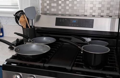 ☆ Living Area: Relax in our spacious living room featuring a 65-inch smart TV with internet access—perfect for streaming your favorite shows or movies. Unwind with a collection of board games or challenge your friends to a game on our classic Pacman Arcade machine for some nostalgic fun!