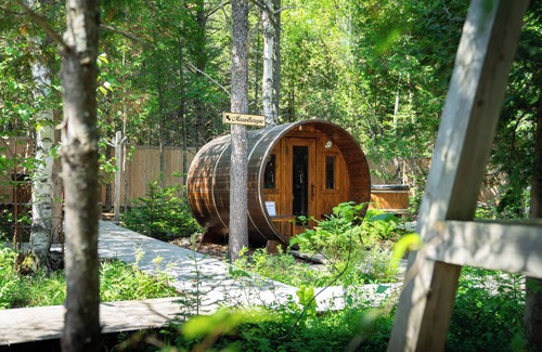 You will benefit from a private terrace with an outdoor fireplace to warm up your winter evenings and brighten up your summer evenings, access to our spa area in the middle of our forest as well as access to the terrace, located on the roof of the reception building, to enjoy a breathtaking view of the St. Lawrence River!