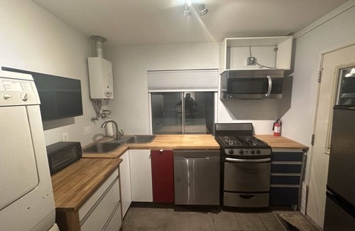 Al instalarte en este alojamiento de 1 dormitorio y 1.5 baños, encontrarás una zona para barbacoas, chimenea y aire acondicionado. También puedes utilizar la bañera de hidromasaje, además de otras comodidades como toallas, champú y jabón. La cocina está equipada con horno, placa de cocina y lavavajillas, además de cafetera y tetera y microondas. Y gracias a la lavadora y la secadora, podrás viajar con poco equipaje.