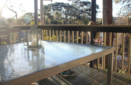 Esta casa se encuentra apartado de la calle, y entre la fresca sombra de los árboles, con Kookaburra de y Lorikeets menudo espera de ser alimentados desde la cubierta trasera que atiende a 10 sentado, barbacoa y salón al aire libre caña para relajarse, leer un libro o una mirada en el lago, también domina el césped bañado por el sol, donde los niños pueden jugar. Añadido a gas horno de pizza situado abajo para algo diferente.