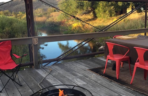 Únase a nosotros para ver increíbles puestas de sol en el porche de la granja mientras Red Tail Hawks circula por encima de la pradera, participe en el nuevo oeste. La sala Sundance está en el segundo piso de la posada, que es una granja renovada de 1894. Estamos ubicados en el North Fork del Cache La Pouder River Valley. La pesca con mosca está disponible por la puerta de atrás. Hay muchas áreas para disfrutar durante su estadía, una sauna de leña, bañera de hidromasaje, histórico puente de hierro y un desayuno saludable.