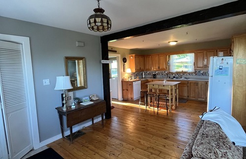 Disfrute de permanecer cerca de la Bahía de Fundy en nuestra casa Century renovada en la colina en Margaretsville, Nueva Escocia. Relájese en nuestra sala de estar y comedor soleado y abierto con vigas a la vista, pisos de pino y estufa de leña. Realice una caminata corta para cruzar el camino a la playa aproximadamente 200 pies. Rockhound y camine durante la marea baja para descubrir los tesoros del mar mientras la Bahía de Fundy ofrece las mareas más altas del mundo. Pasee por el faro de Margaretsville Est. 1859 y visite el muelle donde puede ver la galería de arte local 'The Artist's Circle'. Si le gusta pescar, puede unirse a los entusiastas de la caballa en el muelle durante la marea alta, donde las plataformas pueden traer de 4 a 5 a la vez. '¡Caballa Santa!'
