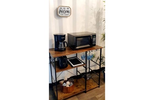 Prepara una comida casera en la cocina, equipada con placa de cocina y frigorífico, además de cafetera y tetera, microondas y utensilios de cocina. El cuarto de baño incluye toallas, papel higiénico y jabón. Otras comodidades incluyen ropa de cama y aire acondicionado.