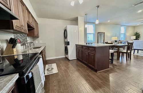 Este alojamiento de 2 dormitorios y 1 baño cuenta con aire acondicionado y escritorio. El cuarto de baño incluye un secador de pelo, toallas y jabón. La cocina está equipada con horno, placa de cocina y frigorífico, además de cafetera y tetera, hervidor eléctrico y microondas. Y como podrás aprovechar la lavadora y la secadora, no te hará falta llevar mucho equipaje.