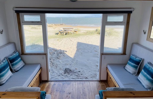Beach Hut situated directly on the beach at Mudeford Spit, with an uninterrupted view across to the Se encuentra en Hengistbury Head. Beach Hut situated directly on the beach at Mudeford Spit, with an uninterrupted view across to the ofrece alojamiento, con Vista, Vista al océano, Frente al mar, Entre otras comodidades. Estas características Chalet de esquí Vista, Vista al océano, Frente al mar, Para que su estadía sea cómoda.