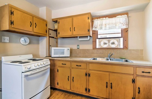 Los techos con vigas a la vista, las paredes pulidas con paneles de madera y los pisos de madera lo guían de una habitación a otra en la cabaña. Dirígete a la cocina bien equipada para preparar tus recetas favoritas y luego coloca la mesa de comedor de madera redonda adyacente para compartir cada fiesta casera.
