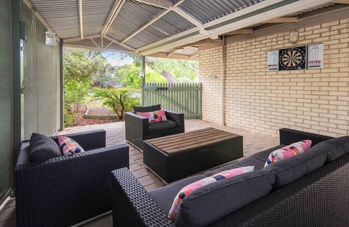 Esta casa de vacaciones de 4 dormitorios y 1 baño se encuentra en Busselton y es una ubicación fantástica desde la que recorrer los alrededores. A los amantes de la naturaleza y el aire libre les encantará estar a 5 minutos a pie de Busselton Beach y a 4min en coche de Geographe Bay. Estarás a 14min a pie de Busselton Archery & Family Fun Park y a 3min en coche de Kaloorup Road Oval. El alojamiento dispone de aparcamiento en las instalaciones, de modo que puedes dejar tu vehículo u optar por la opción más rápida.