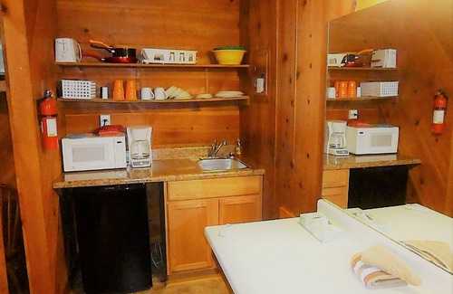 Nuestro Bear Paw Cottage es una reminiscencia de la cancha de motor del pasado y ofrece estacionamiento nivelado, lo que hace que esta cabaña sea ideal para los entusiastas de las motocicletas o las personas que desean evitar una cabaña con muchas escaleras.