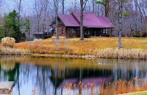 Beautiful, authentic log cabin with acres of land, fishing pond, and hot tub. | Cabina en Beattyville